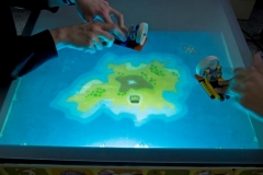 La creciente popularidad de los dispositivos de mesa está trayendo una nueva generación de aplicaciones de juegos que amplían la noción tradicional de juegos de mesa al ser jugados en superficies aumentadas digitalmente. El enfoque de interacción tangible se ha convertido durante los últimos años en una alternativa prometedora a las mesas multitáctiles para niños muy pequeños. Los niños que aprenden con interfaces de usuario tangibles (TUI) pueden beneficiarse de los mismos valores pedagógicos que aprender con materiales en un juego físico.