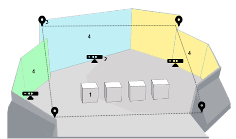 sensor que rastrea la posición de los usuarios. Se basa en el uso de pequeñas balizas de radiofrecuencia activas cuya posición es triangulada por cuatro receptores de sensor colocados en las esquinas del espacio interactivo.